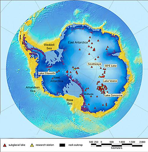 Denkt man an die Antarktis, stellen sich wohl die meisten Menschen einen Kontinent mit einem kompakten Eisschild vor. Kaum vorstellbar ist, dass es unter dem Eis jede Menge Seen gibt, die teilweise untereinander verbunden sind und sogar Wasser austauschen. Dies hat vermutlich auch einen deutlichen Einfluss auf die Dynamik dieser riesigen Eismasse. Die NASA hat jetzt eine Karte von 124 solcher «aktiver subglazialer Seen» veröffentlicht. Einige dieser Seen ziehen die Forscher besonders in ihren Bann, weil möglicherweise noch unbekannte Lebensformen in ihnen entdeckt werden könnten. Subglaziale Seen sind zum Teil mehrere hunderttausend Jahre von der Aussenwelt abgeschnitten und bergen womöglich noch einige Überraschungen.